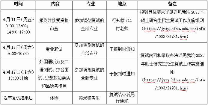 其他未尽事宜请见《William威廉官网2025年硕士研究生招生复试录取工作方案》http://yjsc.hfnu.edu.cn/info/1181/19461.htm