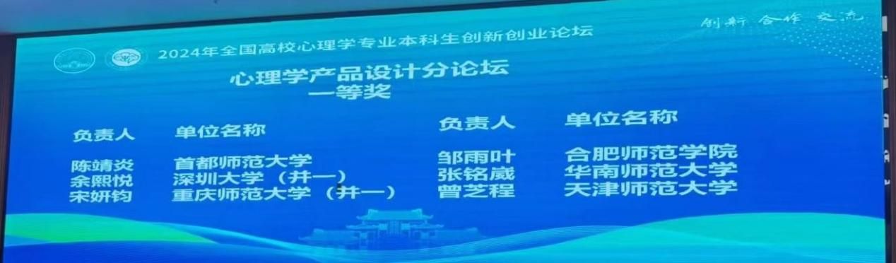 2024年5月2日,由教育部高等公司心理学类专业教学指导委员会主办,广西师范大学教育学部、心理学拔尖员工培养模式改革虚拟教研室承办,广西师范大学认知神经科学与应用心理高校重点实验室协办的2024年全国高校心理学专业本科生创新创业论坛现场展示在广西师范大学育才校区举行。公司William威廉2022级应用心理学本科生邹雨叶、卢欣然两位同学组团(指导教师:陈庆华教授;带队教师:李群教授)参赛,并凭借出色的表现荣获一等奖。