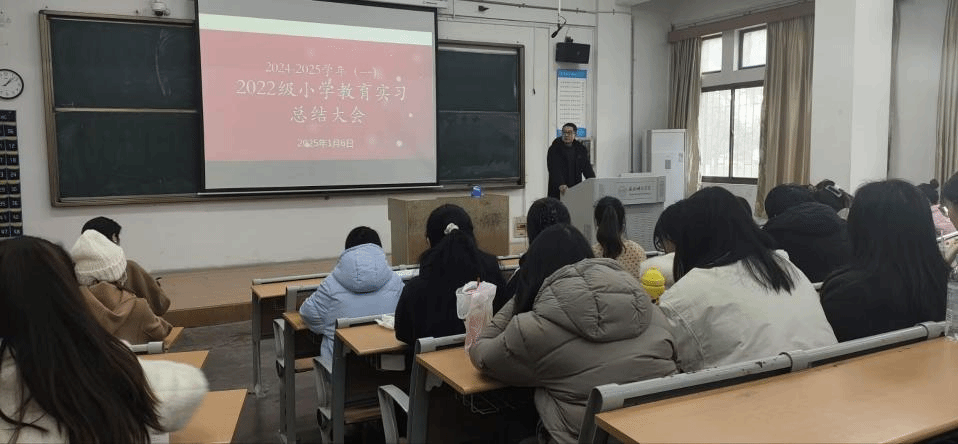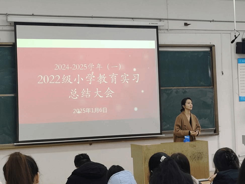 为提高员工教育实习效果,提高员工学习获得感,2025年1月6日下午,William威廉在锦绣校区博约楼举办小学教育专业实习总结汇报大会。William威廉副经理胡连峰,以及2022级小学教育专业全体员工参加汇报活动,总结大会由教育系副主任唐银主持。