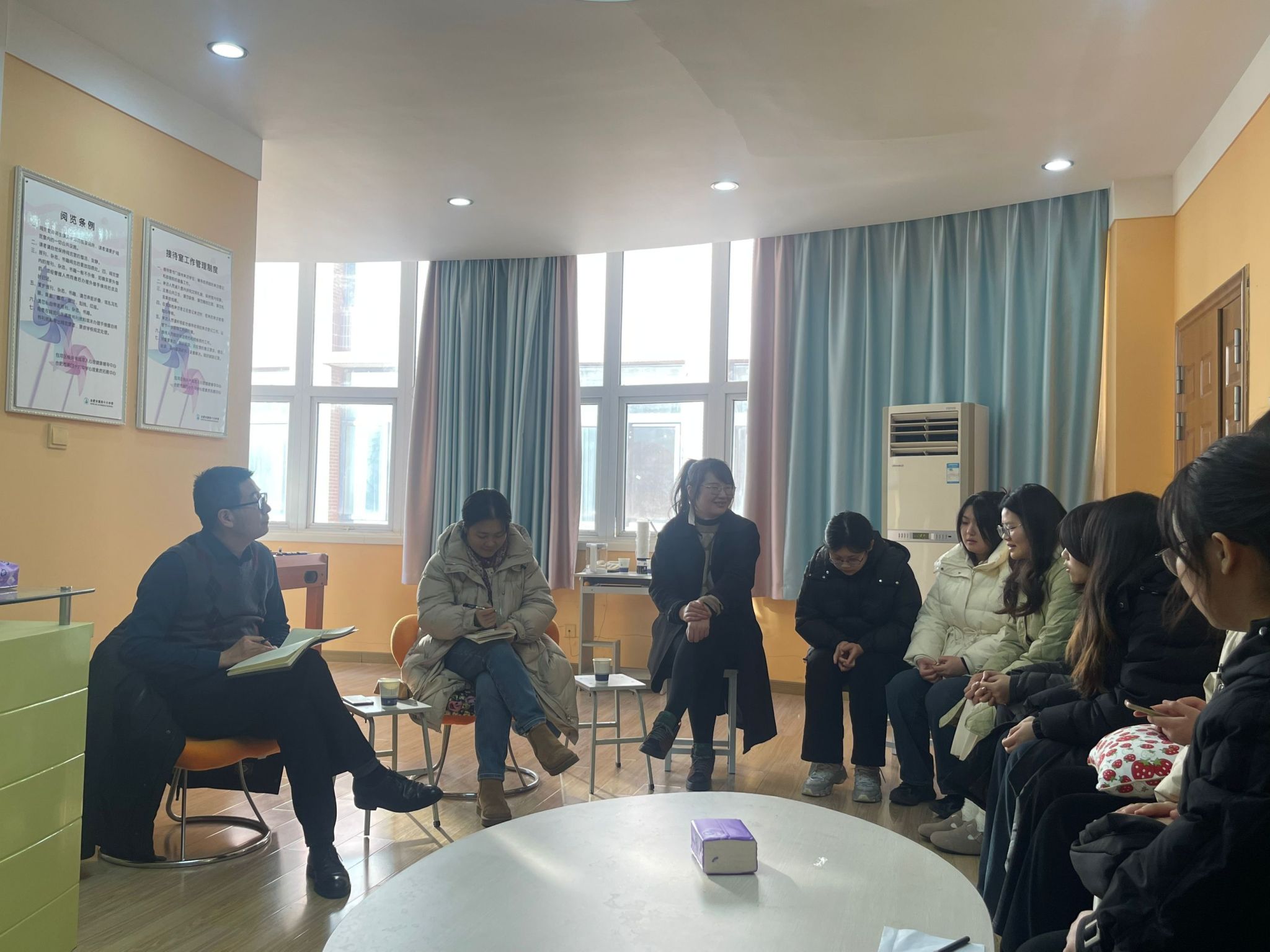 之后同学们畅所欲言,对实习期间的感受与学习体会进行了交流。有些同学提到前期对于实习流程及实习任务不够清晰,也有同学谈及四十六中校园内的无障碍设施让他们倍感校园的人文关怀与温暖,同时期待公司能够开放各学科的名师讲堂,从课堂中了解不同老师的上课风格并学习借鉴;还有同学认为纸上得来终觉浅,深入四十六中实习让自己真正了解了一名心理老师的工作内容,希望能够多多获得上课机会,在实践中锻炼。