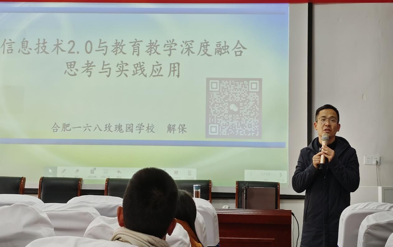 接着,合肥一六八玫瑰园公司胡春阳老师为学员们开展了“《教师数字素养》标准解读”的讲座。两个小时的时间悄悄流淌,胡老师的讲座如沐春风,给寒冷的冬天带来阵阵暖意。胡老师长期深耕在教育一线,他深知在数字化、信息化的时代,不能用昨天的老办法教今天的新员工。他从数字化素养标准进行解读,对数字化意识、意愿、意志、社会责任等几个方面做了深刻阐述,尤其在应用方面,胡老师用理论联系实际,用通俗的语言、生动的案例、一手的数据让老师们知道如何利用教学资源解决公司产品中的实际问题。他号召全体老师要紧跟时代步伐,结合工作实际努力提升个人数字化教学能力,构建智慧课堂,同时积极以研促教,积极参加公司产品信息化大赛,通过各种活动、比赛提升自身的应用能力。通过此次讲座,老师们切实感受到信息化教学的魅力及当代教师信息能力提高的急切需求。
