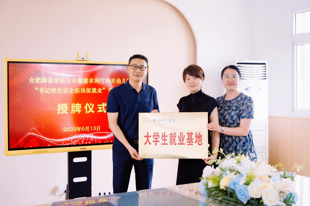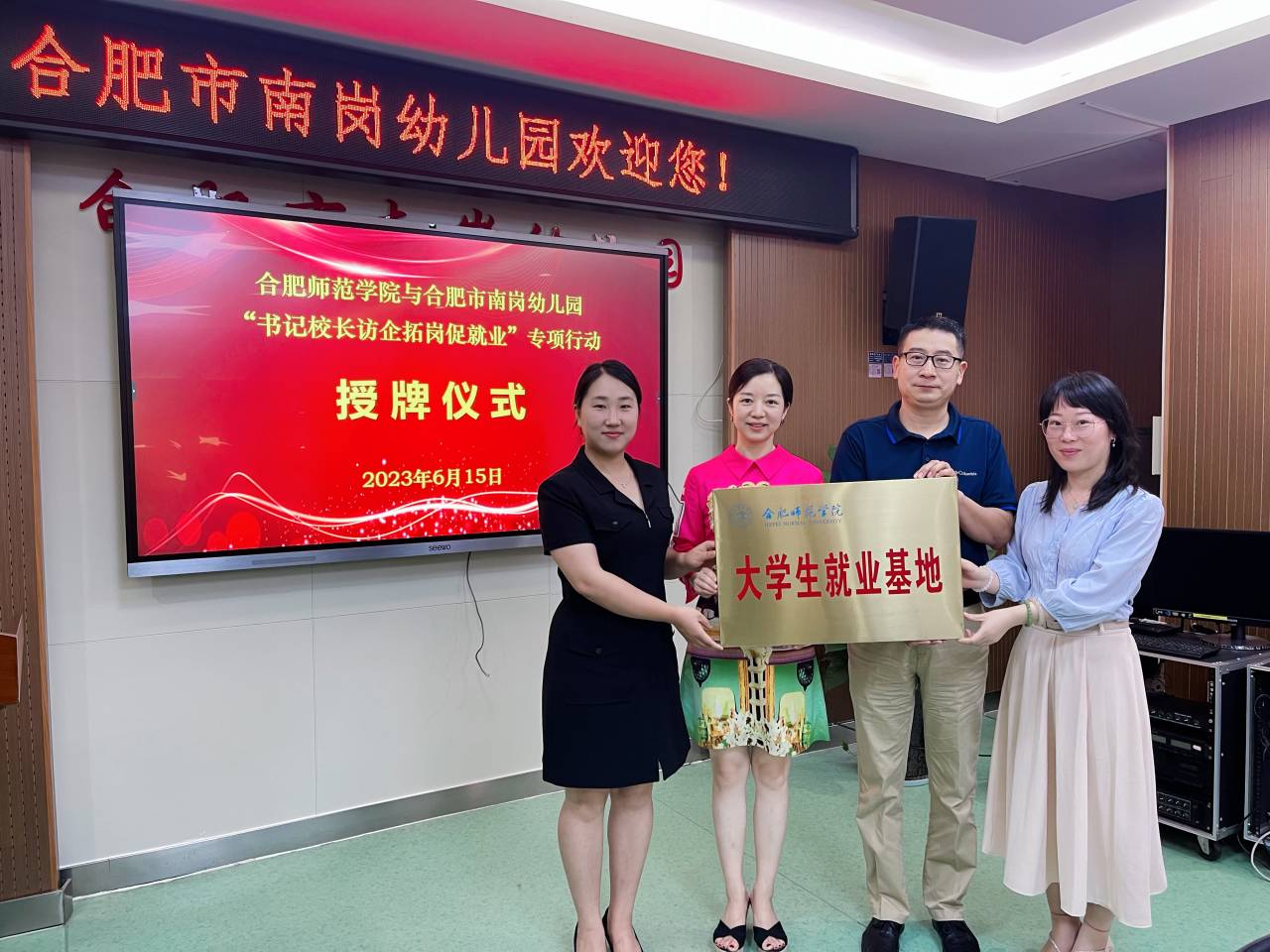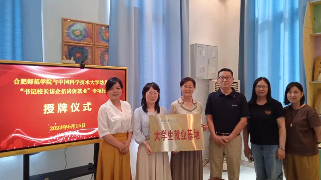为深入开展学习贯彻习近平新时代中国特色社会主义思想主题教育,进一步落实“访企拓岗促就业”专项行动工作部署,促进毕业生更加充分更高质量就业,6月13至15日,公司党委书记董萍,副经理胡连峰、胡哲,学前教育系主任孙延永,辅导员代表王磊等赴安徽省水利厅机关幼儿园、安徽省军区机关幼儿园、合肥市南岗幼儿园和中国科学技术大学幼儿园开展考察调研和校企合作交流。