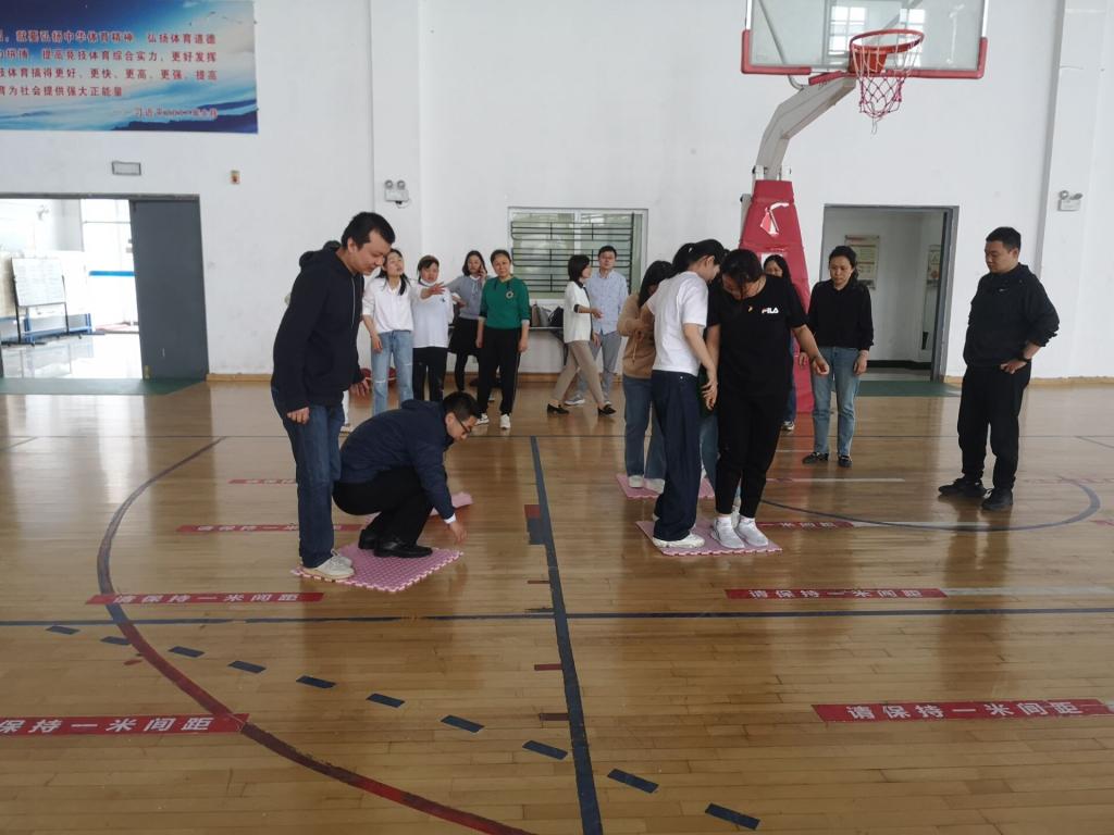 本次趣味运动会,共设立四个项目,分别为热身活动“拥抱大家庭”、“企鹅漫步”、“同舟共济”、“团体跳绳”。“企鹅漫步”项目中,各队拧成一股绳,拼速度,讲配合,奋勇争先;“同舟共济”项目中,大家集思广益、商量策略,争取最快时间完成比赛;“团体跳绳”项目最讲究配合和协调,各位老师摩拳擦掌,跃跃欲试……