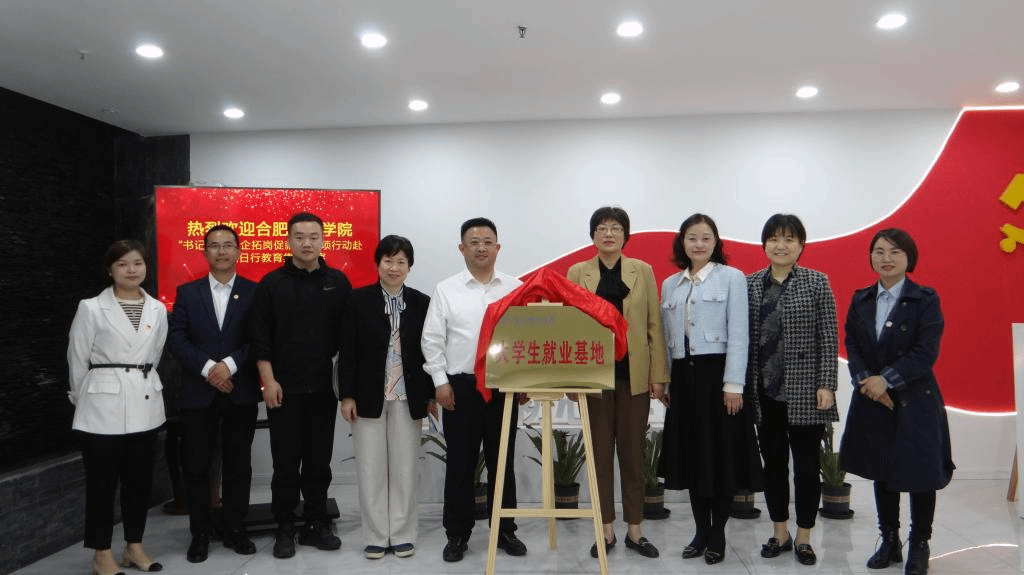 在签约授牌仪式上,方东玲、曹玉峰为安徽日行教育集团老员工就业基地揭牌。李群、曹玉峰签署了共建毕业生就业实习基地合作协议。