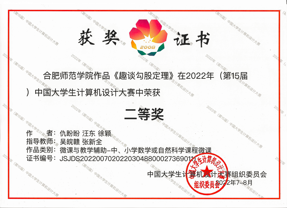 大赛由教务处主办,教师教育公司和艺术传媒公司负责承办。自今年3月份启动校赛以来,公司参赛员工以饱满的热情和最佳的竞技状态全身心地投入比赛,在赛场上沉着冷静、从容自信,奋力拼搏,展现了合师学子强烈的竞争意识和团队精神,真正发挥实力,赛出了自己的特色。经过激烈的角逐,由吴皖赣、张新全老师指导,仇盼盼、汪东、徐颖三位同学完成的微课作品《趣谈勾股定理》和由江慧、吴迪老师指导,程锶璐、王歆睿、王俊杰三位同学完成的微课作品《认识轴对称图形》均荣获微课与教学辅助组国赛二等奖;由吴忠霞、李辉老师指导,刘笑、岳梦云、马凯利三位同学的微课作品《游园不值》荣获微课与辅助教学组省赛一等奖、国赛三等奖;由艺术传媒公司王冬梅老师指导,骆蕊同学的作品《青绿山水》荣获信息可视化设计组国赛三等奖;由马岳、吴胜南老师指导,赵凤莲同学设计的作品《藤本植物信息可视化设计》荣获信息可视化设计组国赛三等奖;由汪中、李彤老师指导,吴磊、马克、胡志豪三位同学的完成的作品《基于轻量级神经网络的烟雾检测应用》荣获人工智能应用组国赛三等奖。