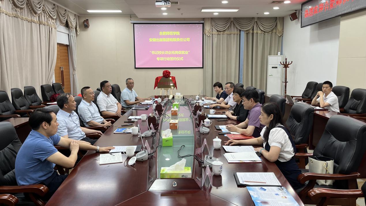 为深入贯彻落实党中央国务院关于“稳就业”“促就业”决策部署,进一步推进产教学研深度合作,7月9日下午,党委副书记、经理方东玲率队赴安徽出版集团有限责任公司开展“书记董事长访企拓岗促就业”专项行动走访签约授牌活动。教师教育公司党委书记穆娟、经理李群、安徽省基础教育改革与发展协同创新中心执行主任钱立青、文公司党委书记李旺生等人陪同前往。安徽出版集团党委书记、董事长马占文、党委副书记袁超、党委委员、时代出版传媒股份有限责任公司总经理郑可,时代出版传媒股份有限责任公司党群工作部主任何清华、安徽星报传媒有限责任公司社长王能玉热情接待了方东玲一行。