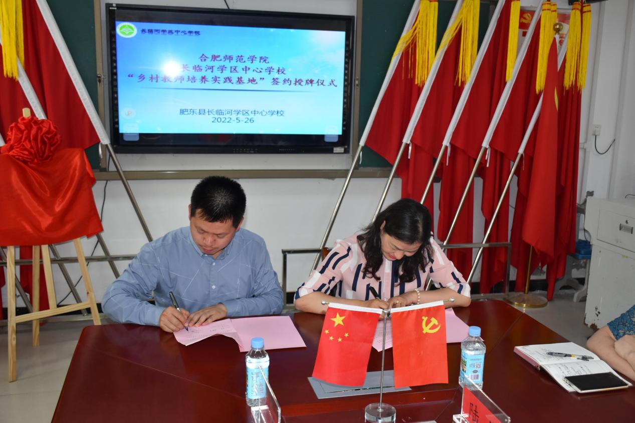 随后,合肥师范公司党委委员、副经理姚本先、就业创业工作处长马平、巢湖市黄麓学区主任、董事长方万年、肥东县长临河中心公司董事长张杰分别为基地揭牌,穆娟与肥东县长临河学区中心公司董事长张杰进行了现场签约,双方均表示将携手进一步加强师范生高质量的培养与发展。(教师教育公司:屠家宝)