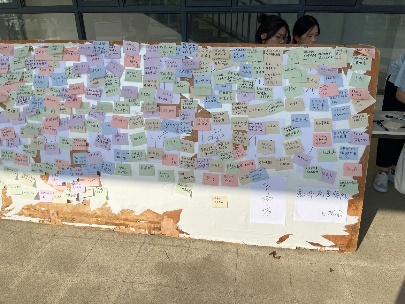 “我以我手执心笔 我以我情赠他人”祝福活动,是将内心的期许或是对他人的祝福书写于便利贴上的形式进行,在两天的时间内收集了几百张大家的心声:青年人的内心是积极的,对未来有着美好憧憬的,对自己和他人都充满了善意和祝福。