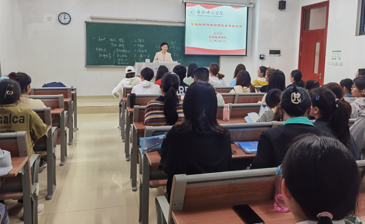 5月11日下午,教师教育公司讲师吴忠霞在滨湖校区博学楼A103教室举行了主题为“专业知识与学前师范生专业发展”的学术报告,教师教育公司2020级、2021级学前教育专业全体员工聆听了报告。
