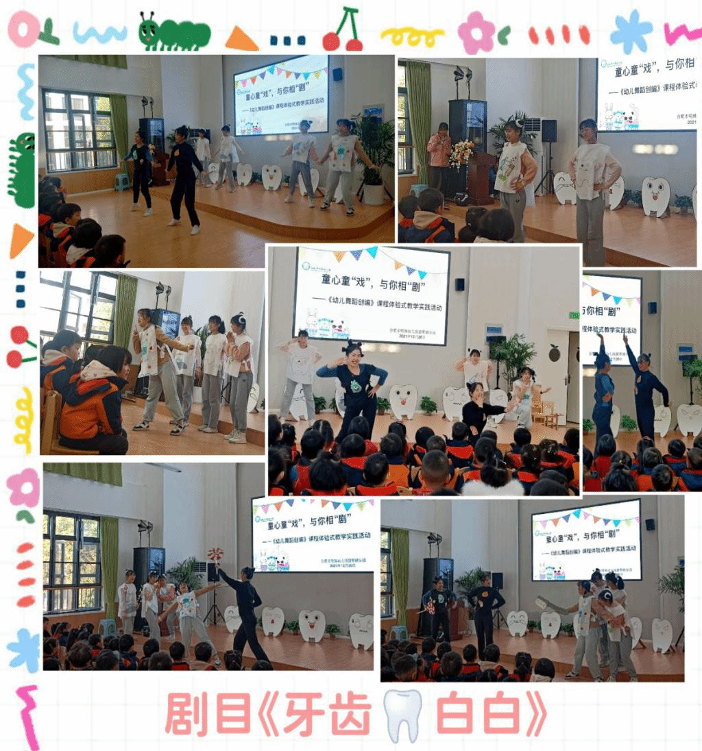 【本网讯】为深入开展基础教育送教服务,提高幼小衔接质量和水平,2021年12月20日,教师教育公司教工第一党支部组织党员教师及员工,赴合肥市明珠幼儿园“开展童心童’戏’,与你相’剧’——《幼儿舞蹈创编》课程体验式教学实践活动”。公司领导对本次活动高度重视,给予大力支持,教工一支部党员教师唐银全程参与、指导员工进行儿童戏剧、舞蹈的创编排练与演出。