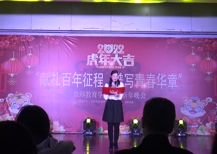 (本网讯)12月21日18点30分,教师教育公司2022年“献礼百年征程,谱写青春华章”新年晚会在锦绣校区老员工活动中心举行。机关第二党委书记钱立青、后勤处处长舒剑、物理与材料工程公司党委书记唐洁、宣传部副部长赵波、院团委副书记刁文彬、教师教育公司党委书记穆娟、经理李群、副经理闫龙以及教师教育公司师生欢聚一堂,共迎新春,共同欣赏丰富多彩的文艺表演。晚会还特别邀请合肥市明珠幼儿园党支部书记王俊、合肥市明珠幼儿园总园长周盼盼参加。