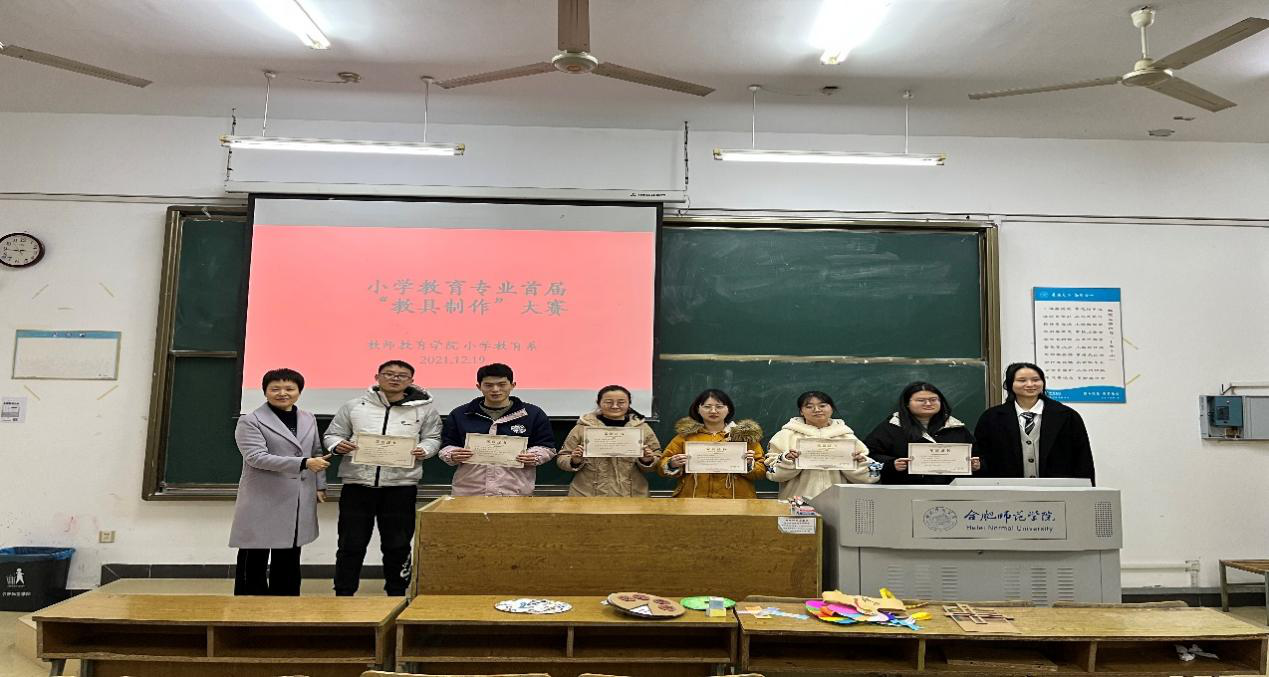 为深入学习贯彻习近平总书记关于教育的重要论述和全国教育大会精神,落实中共中央国务院《关于全面深化新时代教师队伍建设改革的意见》,大力提升教师专业能力,创新师范生培养模式,强化师范生的教育实践,2021年12月19日下午教师教育公司小学教育专业首届“教具制作”(数学)大赛在锦绣校区博约楼110教室顺利举行,2019级小学教育专业全体员工参加了本次比赛。