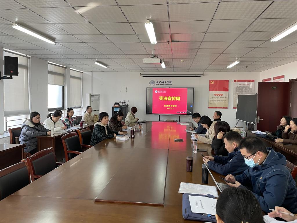 12月1日,教师教育公司召开全体教职工理论学习会议。会上,党委书记穆娟传达了《关于开展2021年“宪法宣传周”活动的通知》,带领全体教职工学习了《习近平法治思想学习纲要》的部分章节,并共同观看了《新闻联播》栏目对《习近平法治思想学习纲要》出版发行及主要内容的介绍视频。穆娟要求,各支部、全体党员要根据通知安排,开展“宪法宣传周”活动,原原本本、逐章逐条通读、学习宪法,学习习近平法治思想,辅导员要在员工中广泛开展宪法学习宣传活动,扩大法治宣传的受众面,持续做好习近平法治思想宣传教育,教育引导公司师生弘扬宪法精神,维护宪法权威,践行法治理念,不断增强走中国特色社会主义法治道路的自信和自觉。