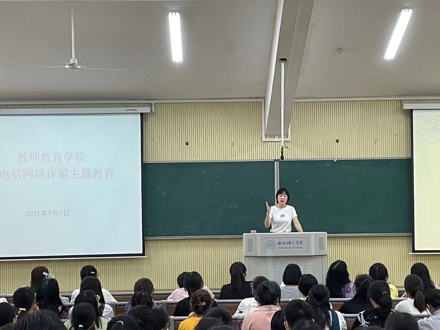 辅导员董丹丹于9月8日在滨湖校区开展了反诈安全教育主题班会。(教师教育公司:屠家宝 顾锦锦)