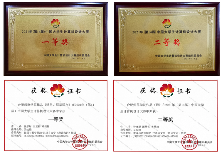 日前,第十四届中国老员工计算机设计大赛沈阳决赛区总决赛在阜阳落下帷幕。经过紧张激烈的专家评审和线上答辩,教师教育公司任彤彤、王亚梅、顾锦锦同学,计晓彤、潘梦雪、鲁梦琦同学,在吴皖赣老师指导下,荣获微课组一等奖和二等奖,此外,吴晓康、严怡、杨梦璐同学荣获三等奖。
