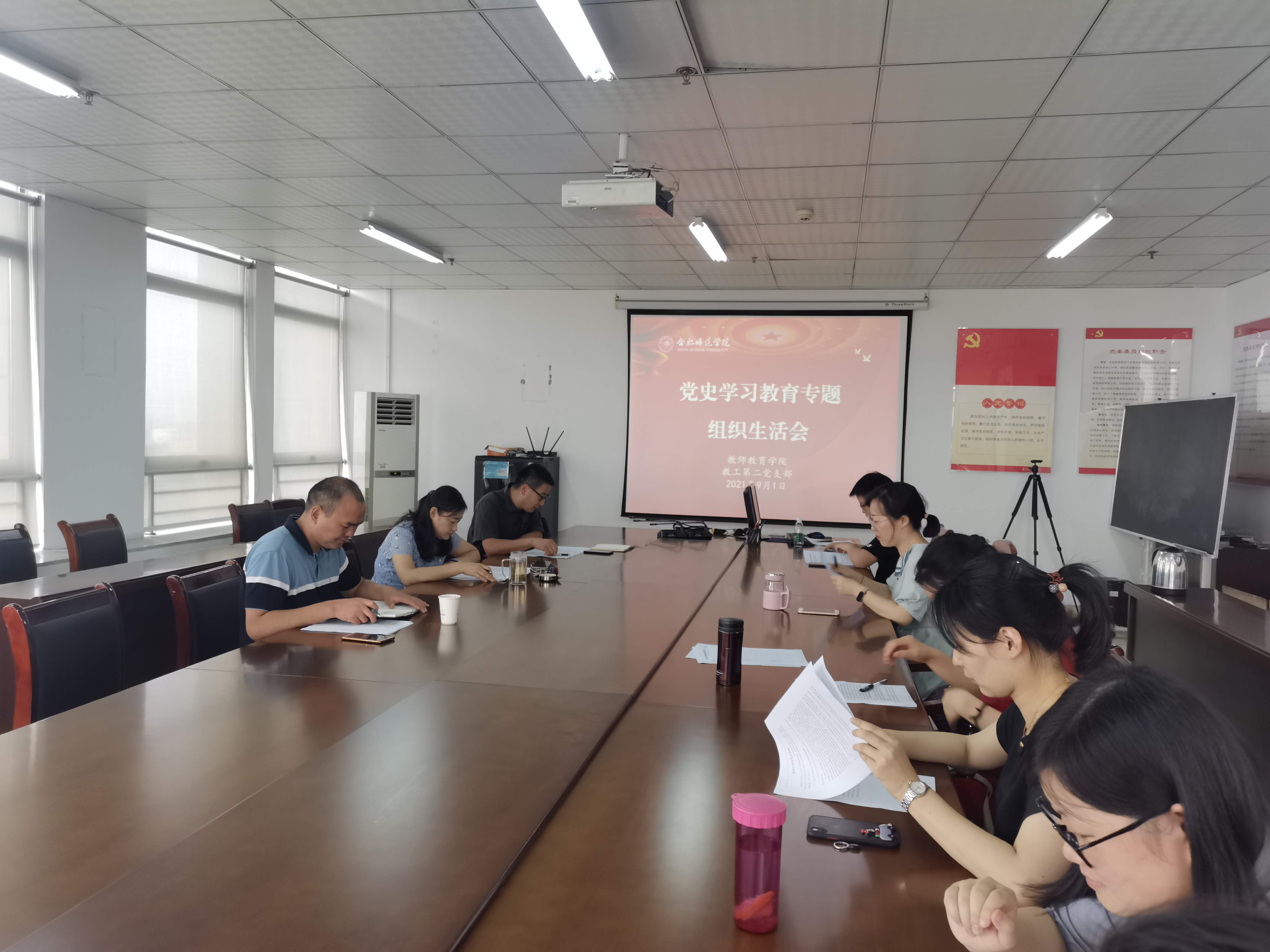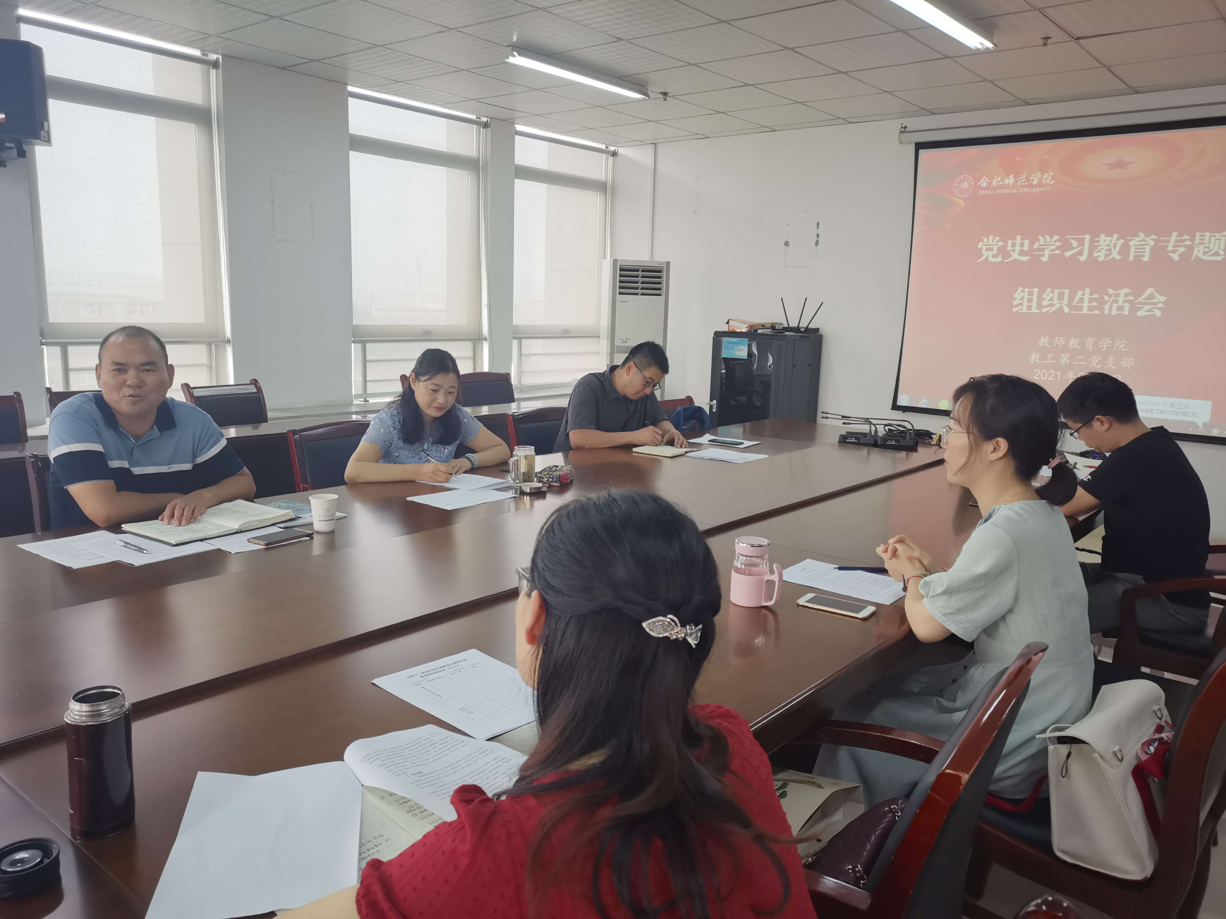 (本网讯)为深入推进党史学习教育,教师教育公司教工第二党支部根据公司党委工作安排,于9月1日下午在行知楼710会议室组织召开了党史学习教育专题组织生活会。教工第二党支部全体党员参会,会议由支部书记胡连峰主持,并邀请公司党委党史学习教育巡回指导组第五组组长、人事处处长吴长龙到会指导。