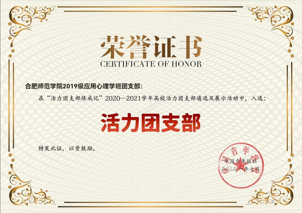 近期,由共青团中央指导、中国青年报主办的“2020-2021学年高校活力团支部”遴选工作公布了全国高校“活力团支部”获奖名单,教师教育公司2019级应用心理学班团支部在全国众多基层团组织中脱颖而出,荣获2020-2021学年高校“活力团支部”荣誉称号。