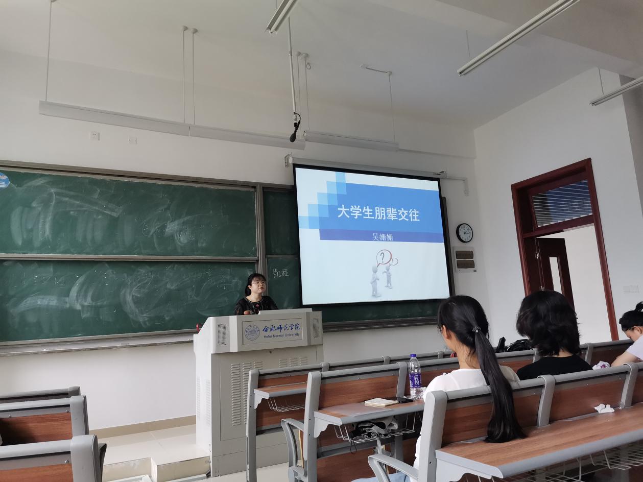 吴珊珊老师用生活中人际交往的小事例,告诉同学们良好的朋辈关系是身心健康发展的需要,可以促进信息交流与共享,能够使同学们从友好协作的人际关系中汲取力量,在大学的生活学习中互助共赢,并提醒同学们不良的人际关系易造成心理障碍,产生心理疾病,甚至爆发冲突酿成悲剧。最后,吴珊珊表示良好的朋辈关系是大家共同付出所创造的结果,希望同学们明白在日常生活中应正确处理朋辈关系,用积极的心态去解决问题,努力让自己的老员工活更加健康快乐。