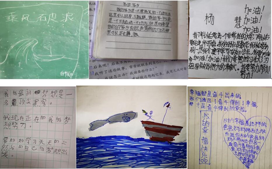 在课堂上,教师教育公司的6位“小先生”分别围绕脱贫攻坚是干出来的、幸福是奋斗出来的、滴水穿石、弱鸟先飞、自力更生、乘风破浪等6个主题,用故事、多媒体等呈现方式以及生动易懂的语言,激发孩子们树立远大志向和高远理想。课堂气氛活跃,互动融洽热烈,“小先生”们激情投入,听课的孩子聚精会神。在这些“小先生”的启发引导下,两所小学的孩子们用稚嫩的笔触、以或写或画的方式展示出了对未来美好生活的憧憬。