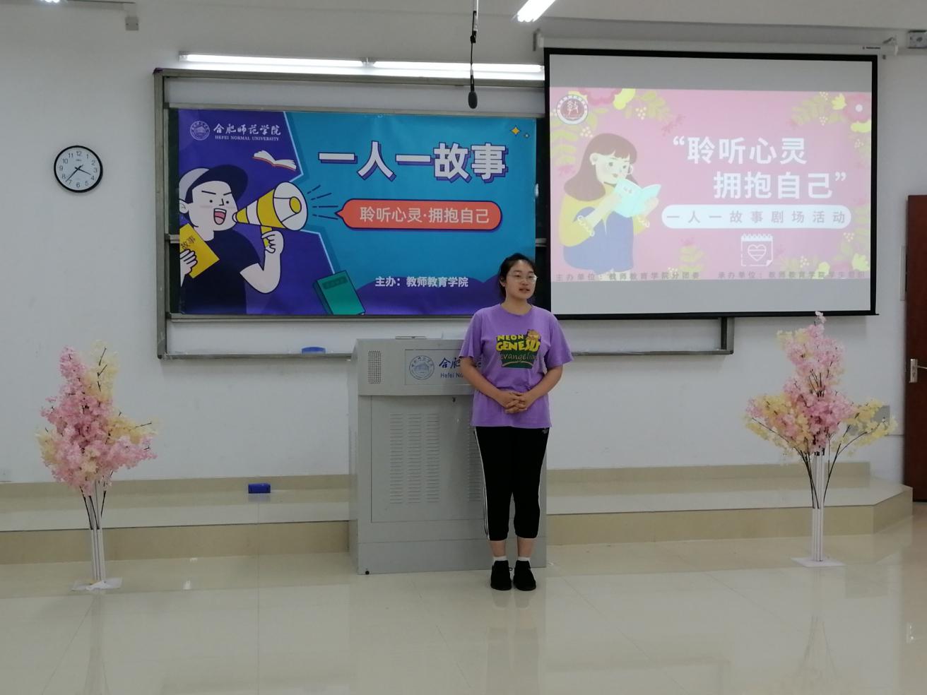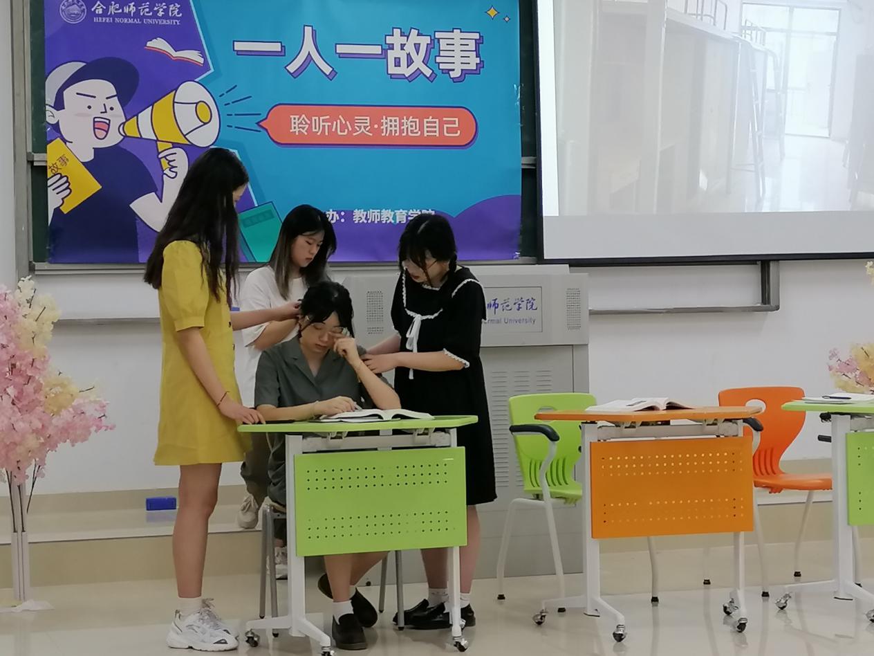 为促进同学们身心健康发展,增进对他人的理解,教师教育公司于6月2日下午在滨湖校区博学楼A309教室成功开展了以“聆听心灵 拥抱自己”为主题的“一人一故事”剧场活动,网络直播同时进行。本次活动由公司辅导员屠家宝老师指导,董丹丹和唐淼老师受邀担任此次活动评委。
