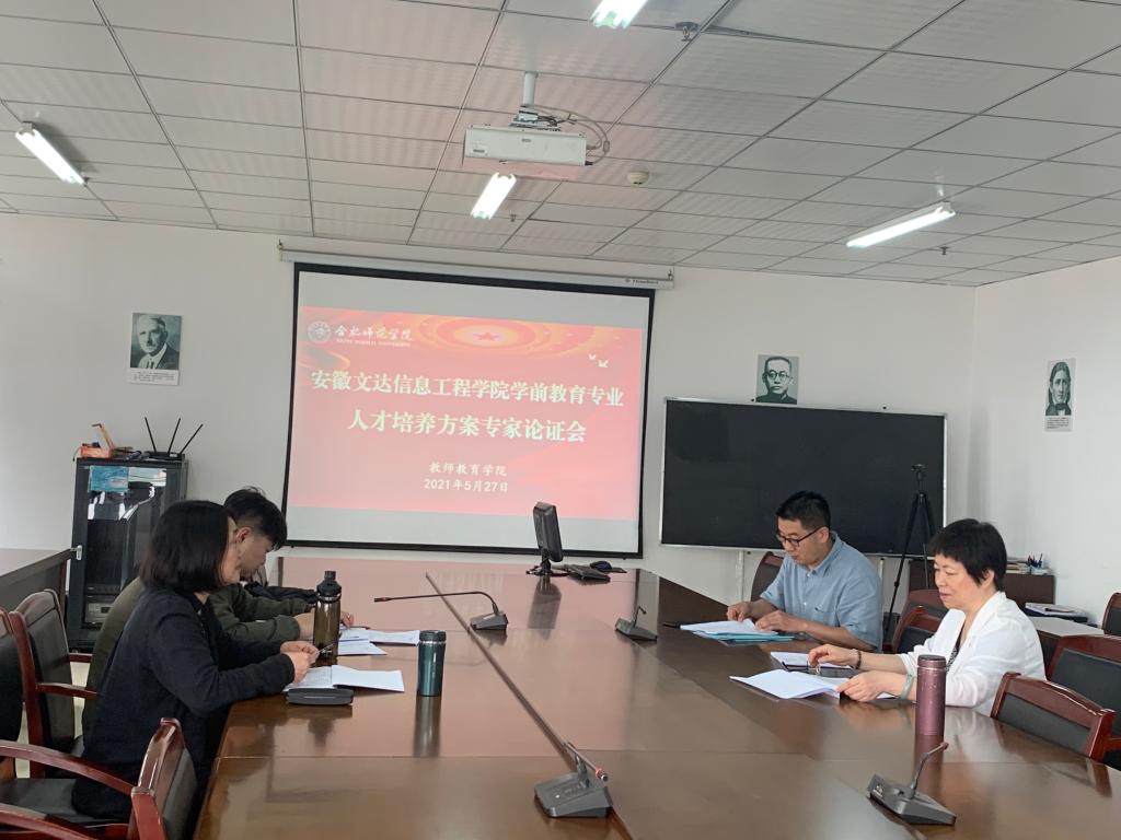 2021年5月27日上午,安徽文达信息工程公司影视传媒公司经理王小玲带着学前教育专业负责人裴老师来教师教育公司调研学前教育专业人才培养方案。教师教育公司经理李群教授和学前教育专业负责人胡连峰副教授接待了王小玲经理一行。