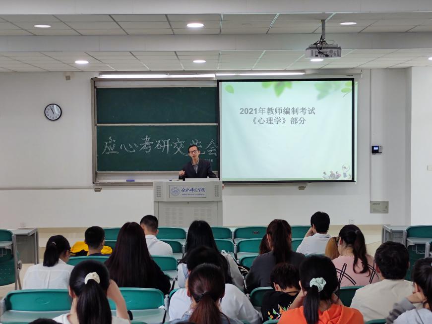 考编、教团队格考试辅导环节中,蒋名平向大家介绍了教师编制考试和教团队格考试的内容与流程,指出了教师考编的难度和挑战性,强调了教团队格证的重要性,着重分析了2021年教师编制考试《心理学》部分的流程以及考试的重点与方法以及题型。随后,晋玉结合与之合作的小学,针对应用心理学专业员工,特别提出在备考心理健康教育学科教团队格的同时,可以根据自己未来的职业规划学习其他学科的专业知识,进行双证考试,增强自己的岗位竞争力。