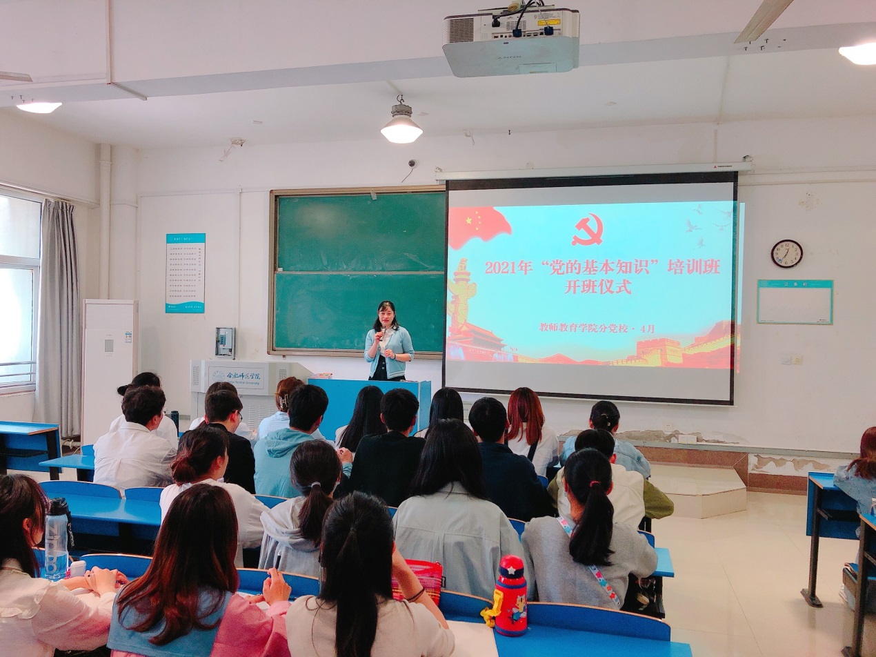 值建党一百周年来临、全党深入开展党史学习教育之际,为切实加强对入党积极分子和发展对象的教育培训,按照公司党委统一部署和公司党委总体规划,4月28日,教师教育公司在逸夫楼A105举行第46期“党的基本知识”培训班开班仪式。公司党委书记穆娟、培训班班主任邢文静出席开班式,教师教育公司锦绣校区入党积极分子、发展对象共66人参加培训。