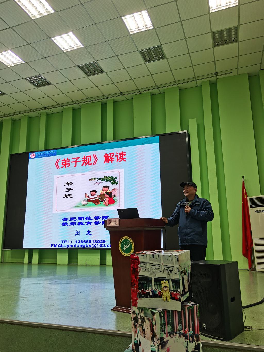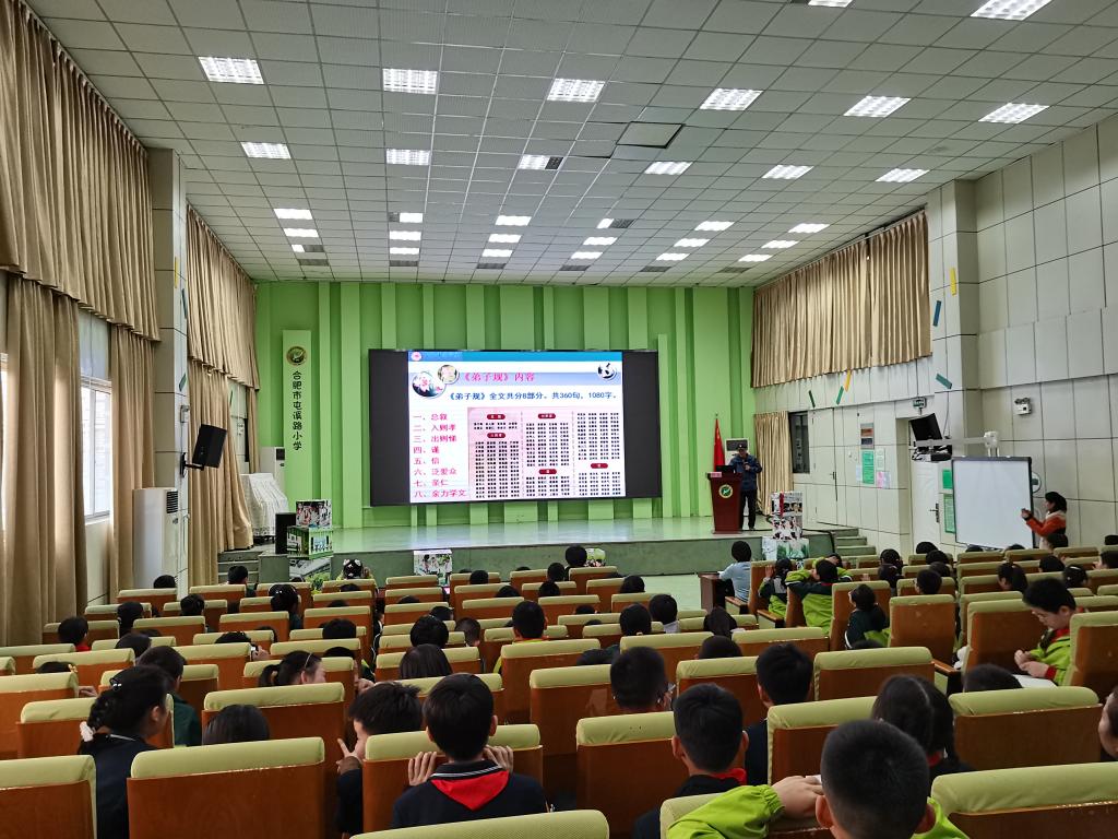 员工专场的讲座主题是“《弟子规》解读”,闫龙副教授深入浅出地向员工们讲解了《弟子规》的内容和当代价值,倡导小员工要尊敬师长、孝顺父母,弘扬中华民族优良美德。通过案例解读和现场互动,小员工体验了一堂生动特别的思政课。随后,屯溪路小学全体教师齐聚报告厅,聆听闫龙解读《中小学教育惩戒规则》。闫龙就《中小学教育惩戒规则》的出台背景、指导思想、实施原则和主要内容进行了分享,并联系社会热点问题,启发教师们如何运用好教师惩戒权,落实立德树人的育人任务。