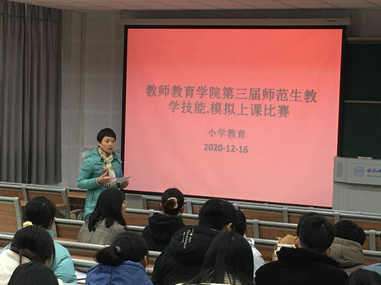 教师教育公司第三届师范生教学技能·模拟上课决赛于2020年12月16日下午在滨湖校区博学楼A108教室正式展开。2019级小学教育本科全体员工进行观摩。
