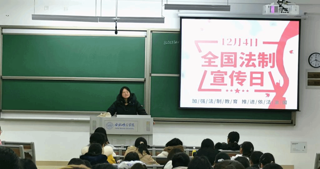唐淼首先以提问互动的方式,让同学们思考宪法和每个人的关系,随后她以生动的事例,说明从胎儿到死亡,宪法与每一位公民都息息相关,《宪法》中涉及到生命权、受教育权、人身自由权、选举权与被选举权、婚姻、财产、遗产继承等多种权利,是每一位公民都必须遵守的行动指南。接着她结合新中国成立后的发展历程,详细介绍了我国宪法的发展历程,同学们心中的敬畏之情油然而生。“国家宪法日”的设立,是全面推进依法治国浓墨重彩之笔,具有重大现实意义和深远历史意义。2020年12月4日是第七个国家宪法日,当代老员工要自觉树立国家主人翁意识和为人民服务的责任感,在走上工作岗位之前,努力加强法律意识的培养,懂得和善于履行社会主义公民的权利和义务,养成自觉遵守法律法规的习惯。