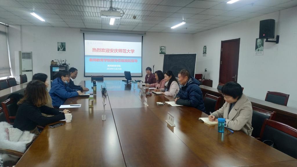 2020年11月25日上午,安庆师范大学教师教育公司党委副书记许世平、小学教育专业负责人李义胜、小学教育专业王爱菊教授和赵雪微老师,深入公司教师教育公司调研指导小学教育专业建设等问题,会议在锦绣校区行知楼710会议室召开。教师教育公司经理李群、书记穆娟、副经理闫龙、小学教育系系主任汪昌华及小学教育系部分教师参加了会议,会议由教师教育公司副经理闫龙主持。