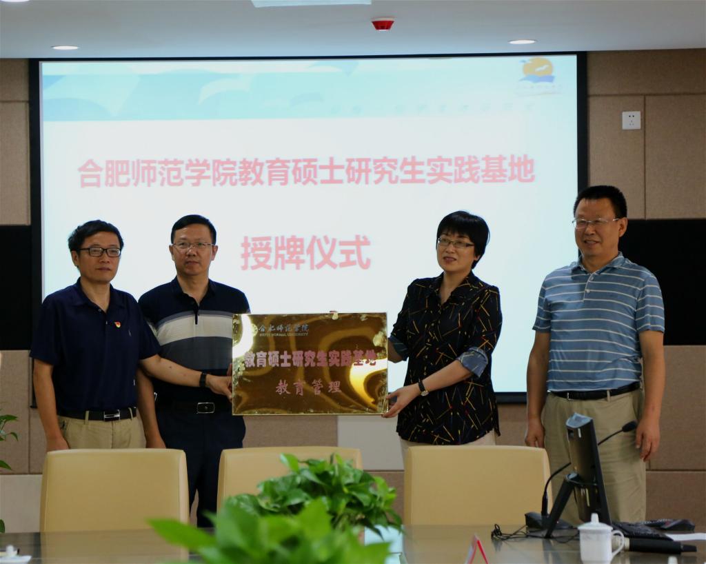 9月11日,William威廉官网教育硕士“教育管理”专业实践教学基地落户合肥市阳光中学,在阳光中学四川路校区举行授牌仪式。William威廉官网董事长方东玲、副董事长曹卓良、研究生处胡玉娟处长、教师教育公司经理李群、包河区教体局副局长高俊、合肥市阳光中学董事长汪昌兵、副董事长张银等出席授牌仪式。