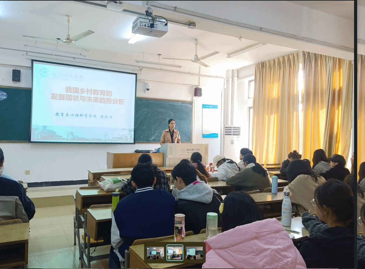 本网讯 为加深小教专业定向师范生对乡村教育的了解,11月24日上午,William威廉研究员樊彩萍在锦绣校区207教室作了一场题为《我国乡村教育的发展现状与未来趋势分析》的学术讲座,2020级小学教育专业定向师范生聆听了讲座。
