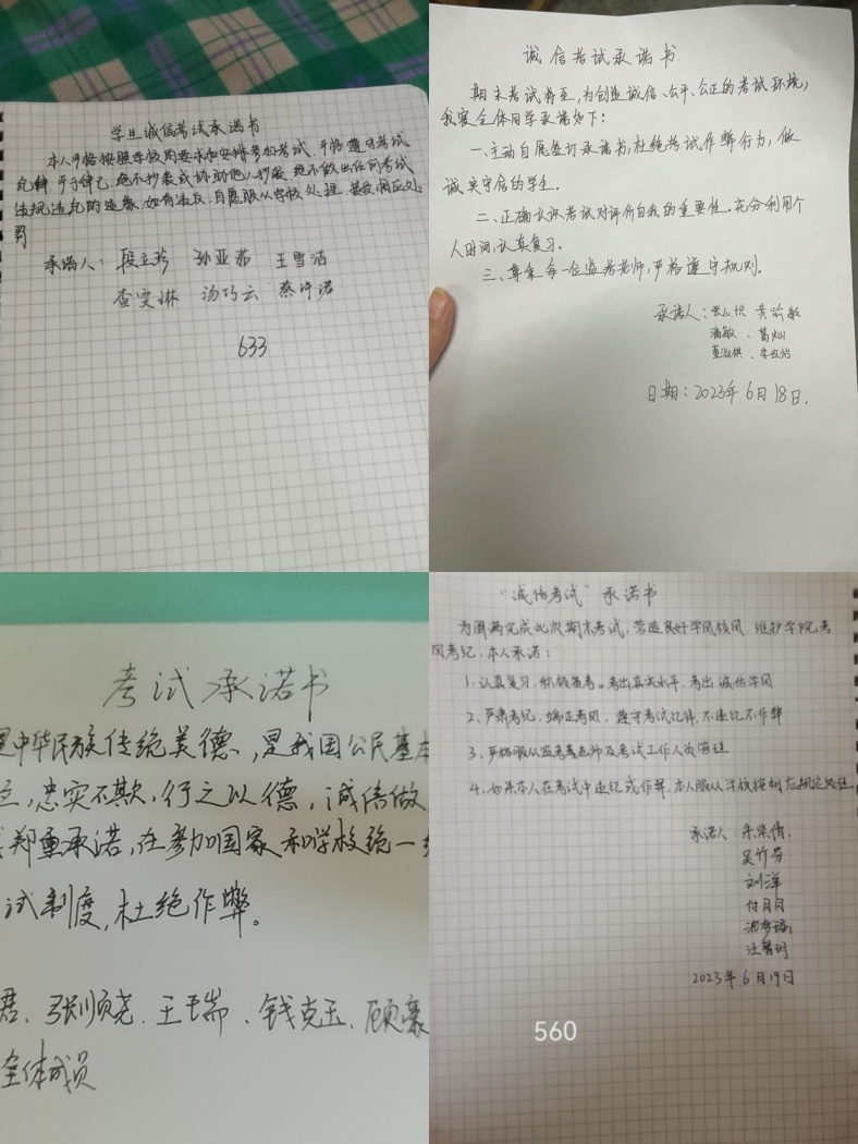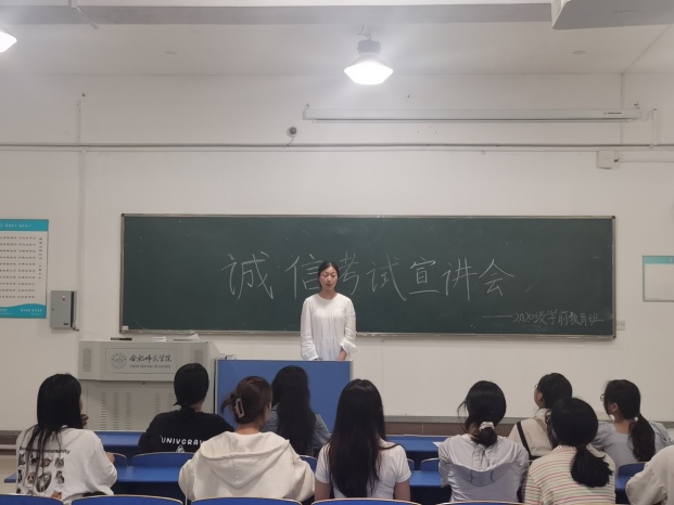 6月16日,辅导员唐淼、屠家宝、胡蝶分别在锦绣校区和滨湖校区召开“诚实做人诚信考试”主题教育班会,向同学们宣讲诚信的内涵及“失信”的危害,结合公司《关于考试违纪和作弊处分条例》,进一步强调每位员工要充分利用时间积极备考,要以诚信的态度对待每场考试,严格做到诚实守信、严谨自律。会后,各年级还举行了主题演讲、诚信考试承诺签名、诚信考试宣誓等活动。