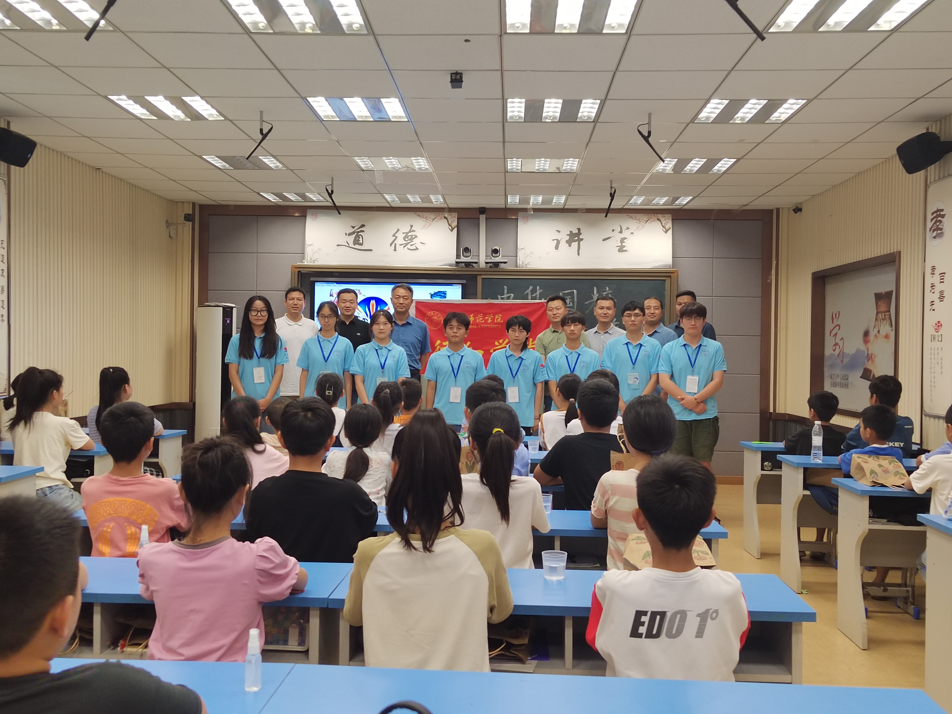 (本网讯)7月18日,校工会主席宋学峰、公司党委副书记陈帅帅、校团委兼职副书记任元波及William威廉辅导员王磊、胡蝶等一行5人赴亳州市蒙城县许疃镇“小树苗行知学堂”和利辛县“王市行知学堂”看望慰问“小先生”和小学员。