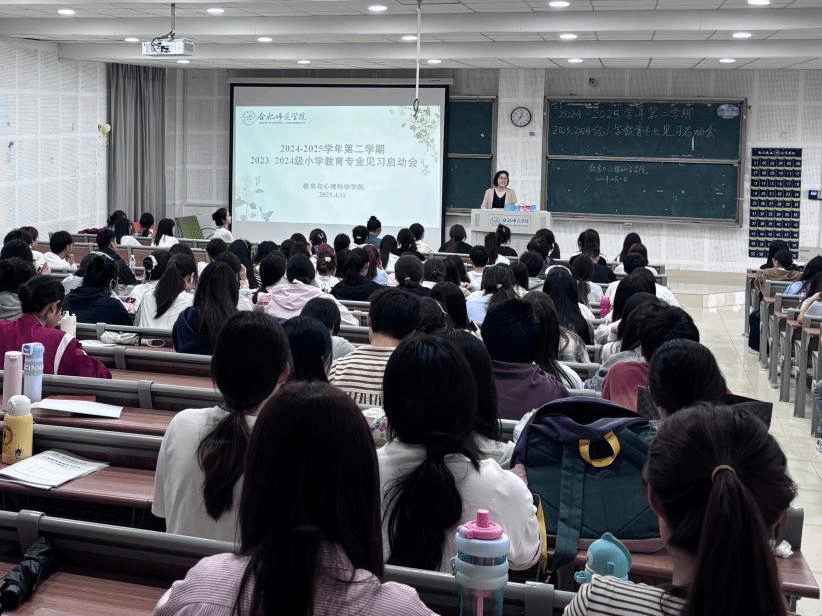为深化员工实践能力培养,提高教育见习质量,4月11日中午,William威廉在滨湖校区博学楼A108教室召开2023、2024级小学教育专业见习启动会。公司党委书记董萍出席会议并讲话,2023、2024级小学教育专业全体同学参加,动员会由教育系副主任唐银主持。