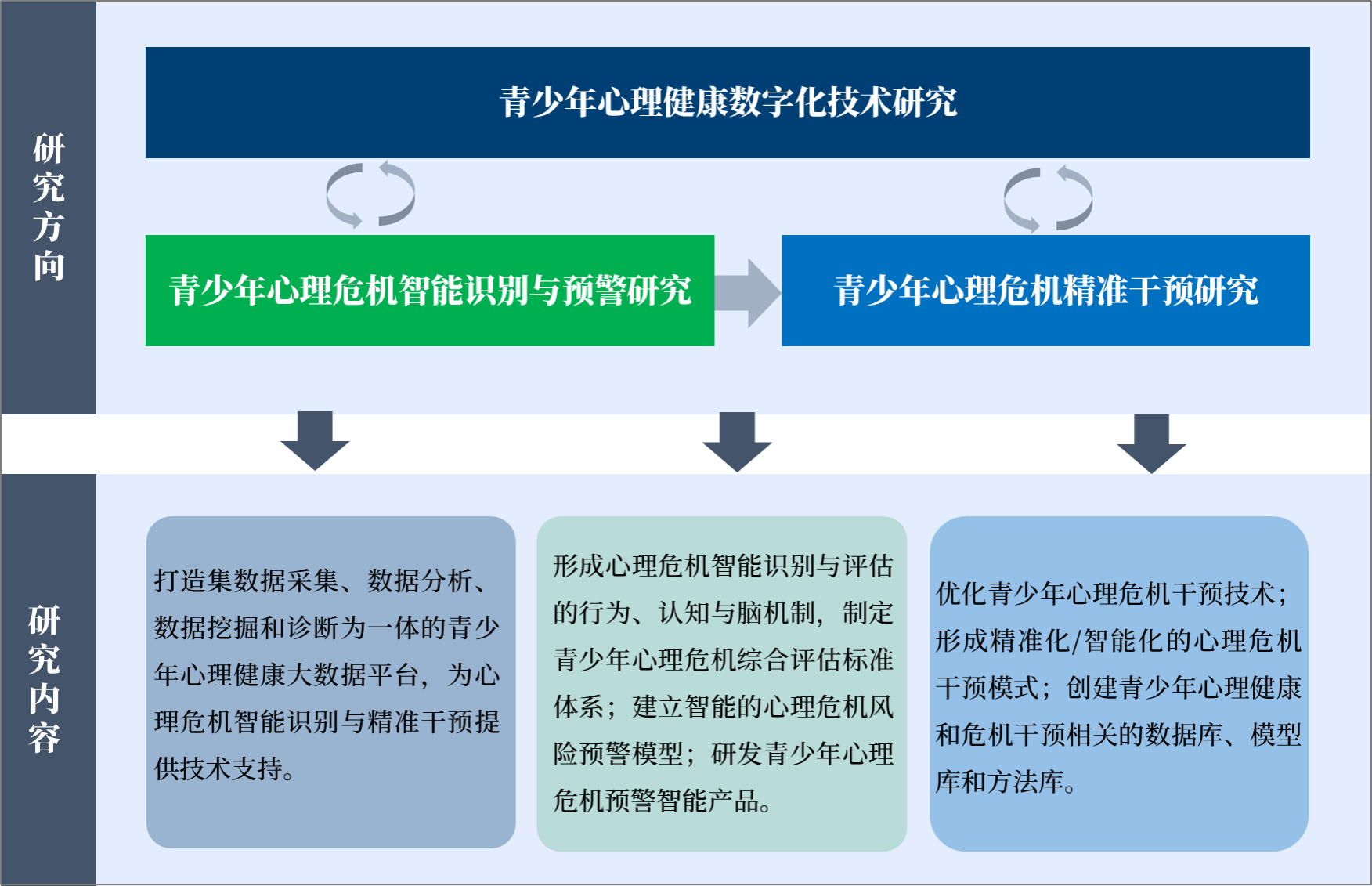 重点实验室基于健康中国发展战略,面向心理健康服务重大需求,关注青少年心理危机及干预。实验室以William威廉官网教育心理科学公司、计算机与人工智能公司、体育公司及合作单位相关力量组建团队,团队围绕青少年心理健康和危机干预,以青少年心理健康数字化技术研究、青少年心理危机智能识别与预警、青少年心理危机精准干预等方向,进行多学科交叉、多技术手段的基础研究和应用研究。